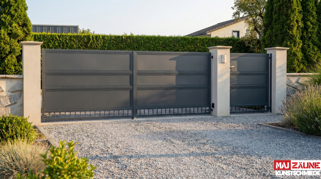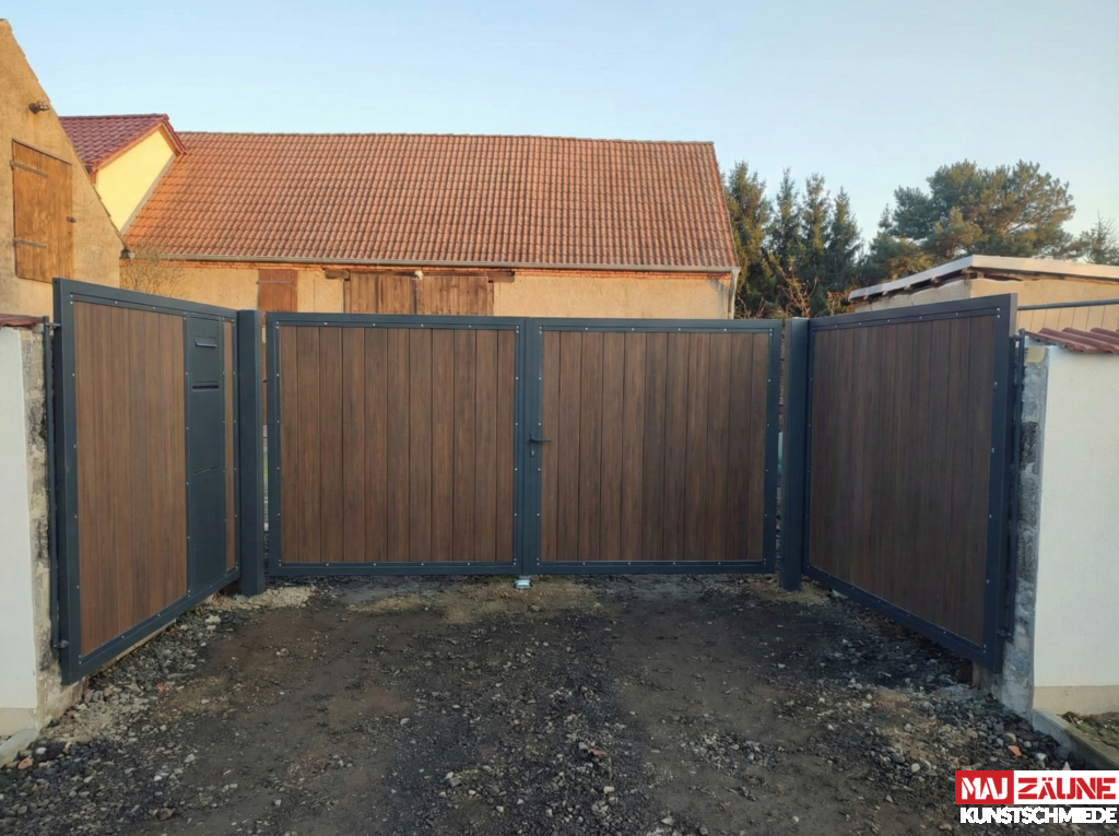 - Privatsphäre: Durch die vollständige oder teilweise Blechfüllung schützen diese Zäune effektiv vor neugierigen Blicken.